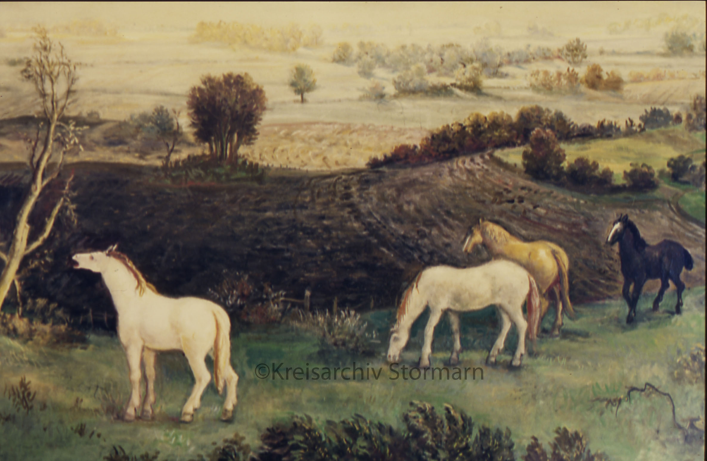 Ausstellung "Malerei und Grafik" von Else Wex-Cleemann: Landschaftsbild mit Pferden
