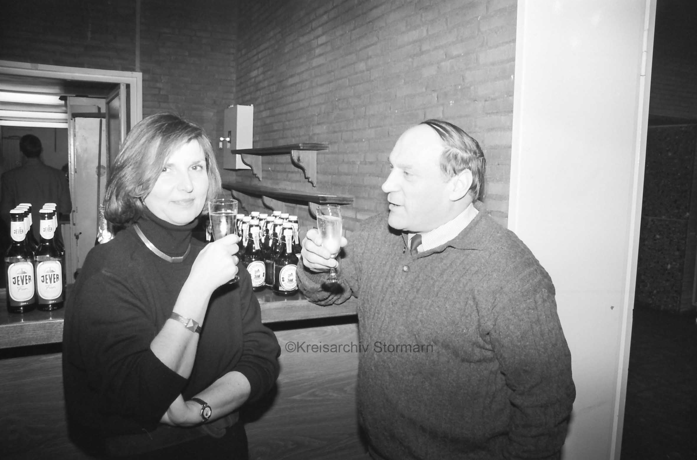 Plöger, Jutta; Maas, Manfred: Auf dem Neujahrsempfang in Glinde sind Barsbütteler Fraktionsvorsitzende Jutta Plöger und Barsbütteler Ortsvereinsvorsitzender Manfred Maas im Gespräch
