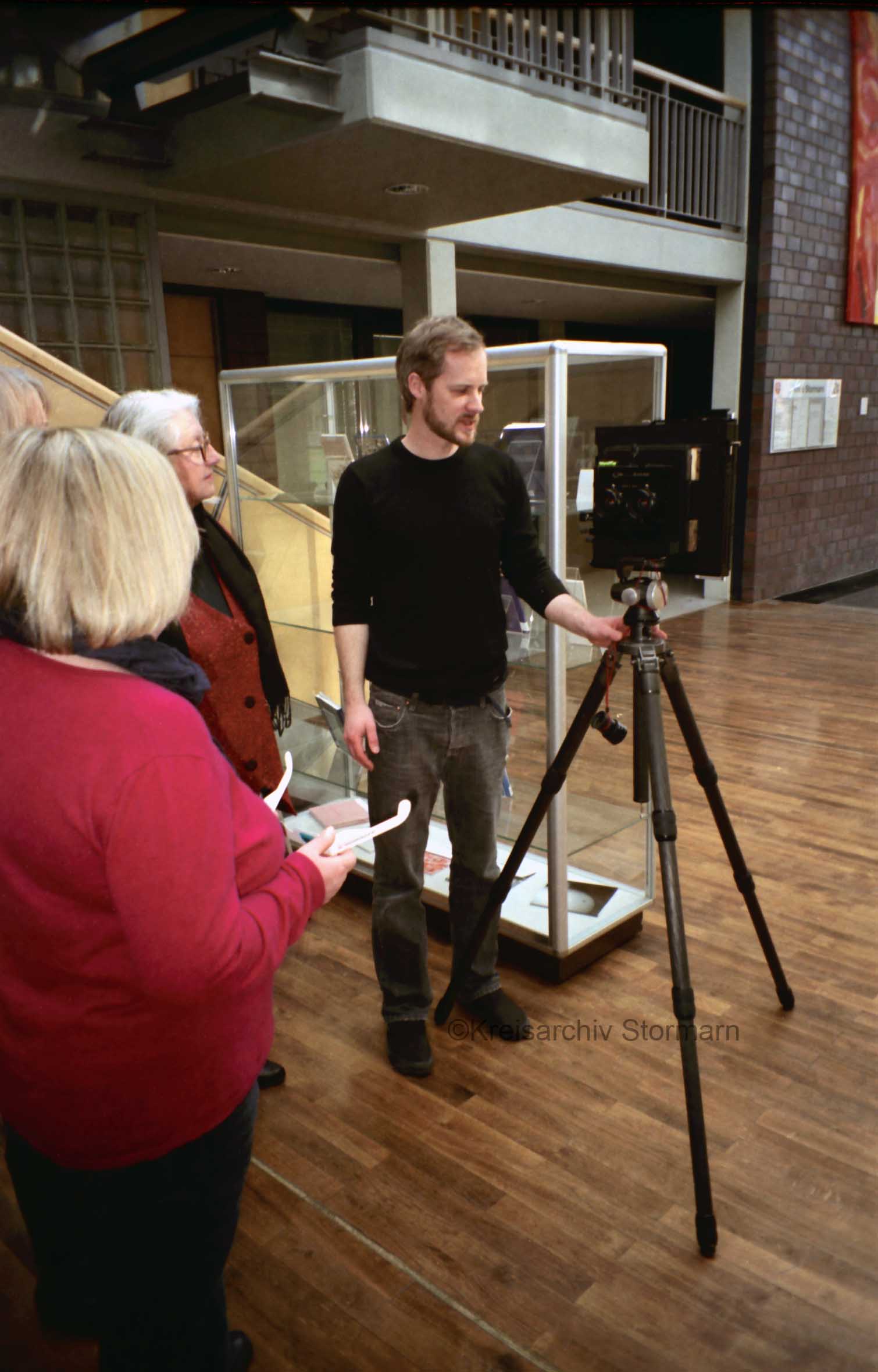Sitzung der Arbeitsgemeinschaft Kunst (Kunst AG) der Sparkassen-Kulturstiftung Stormarn: Künstler Sebastian Denz stellt sich vor, rechts Kameraausrüstung, 29. März 2010