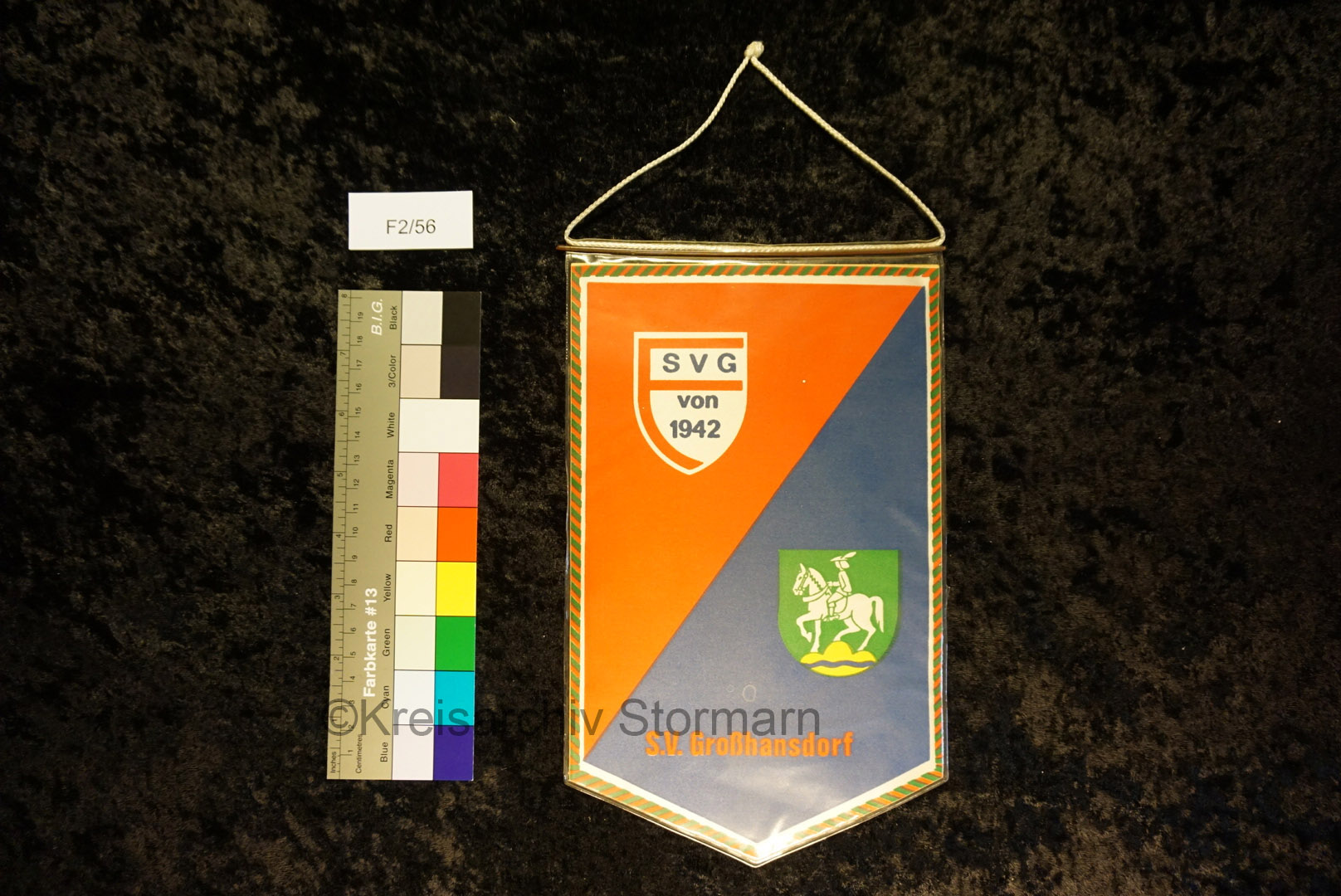 Sportverein Großhansdorf von 1942 e.V.: Banner mit Vereinsemblem und Wappen von Großhansdorf auf Rot und Blau